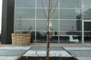 Groenpartners vervulde met het ontwerp en de realisatie van de bedrijfstuin de wens voor een unieke tuin die de moderne en professionele aard van het bedrijf uitstraalt én aansluit bij de architectuur van het moderne bedrijfspand. Branding Office Furniture is gehuisvest in een modern pand en voorziet de bedrijfswereld van exclusieve en hoogwaardige kantoor inrichting en kantoormeubelen met een uitgesproken design.