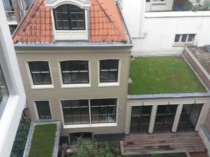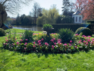 Deze voormalige pastorie heeft een overtuin aan de Vecht. Geheel in stijl met het huis uit de 19e eeuw is er in de overtuin een ovaal verhoogd bloembed aangelegd. De grote bloemenvaas wordt elk half jaar voorzien van seizoensgebonden beplanting zoals knolbegonia’s in de zomer en vele bloembolsoorten in de winter. De overtuinen langs de Vecht werden vroeger o.a. gebruikt voor overslag van goederen die aangeveoerd werden via de rivier. Van gebruikstuin naar siertuin.