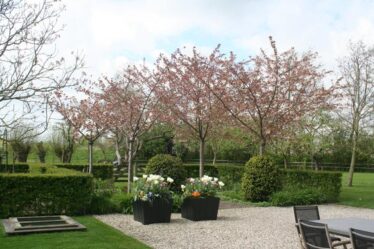 Groenpartners voert het reguliere tuinonderhoud uit. De fruitbomen in de boomgaard worden jaarlijks gesnoeid.
