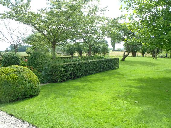 Groenpartners voert het reguliere tuinonderhoud uit. De fruitbomen in de boomgaard worden jaarlijks gesnoeid.