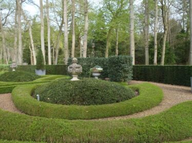 De grote eikenbomen langs de grasvelden geven de tuin een beschut gevoel. Op open plekken verschijnt er in het voorjaar een grote diversiteit aan bloembollen. Vanaf februari tot juni bloeien de bloembollen.